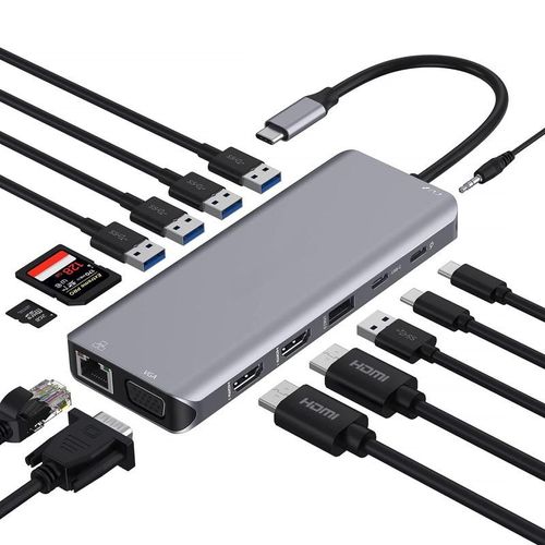 11-in-1 USB-C Hub with Ethernet, 4K HDMI, VGA, PD, SD,TF Cards Reader, Mic-Audio Docking Station